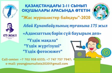 Ә). «Үздік мақала» (көлемі 1 беттен кем болмауы тиіс, Times New Roman, шрифт – 14), «Үздік фотосюжет» (әр қатысушыдан – 3 фотосурет) аталымдарына жіберілетін материалдар электронды поштаға жолданады. «Үздік жүргізуші» аталымы бойынша Байқауға қатысушы жастар туралы 1 өлеңді жатқа оқып, оны ұялы телефон арқылы видеоға түсіріп, YouTube арнасына жүктеп, сілтемесін [email protected] электронды поштасына жібереді. Басқаша тәсілмен жіберілген материалдар Байқауға қабылданбайды.